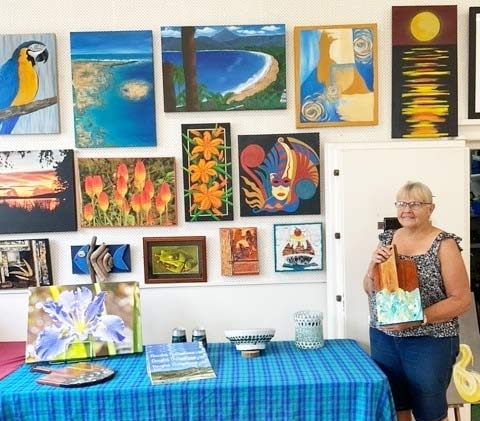 All DAB members are welcome and encouraged to participate in each exhibition. There is always a wide range of mediums including – watercolour and acrylic paintings, botanical style artwork, pottery (both functional and sculptural), glass work, mixed media, mosaics, fibre art and more.